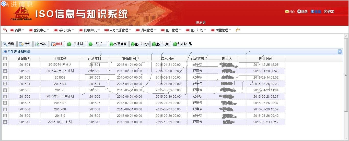 本系統(tǒng)提高了包裝生產(chǎn)計劃制定的效率,以及以日生產(chǎn)計劃為驅動,提高倉管部、采購部的包裝物料需求和采購的計劃效率,在新ISO平臺中添加生產(chǎn)計劃模塊。實現(xiàn)從營銷中心、生產(chǎn)部、包裝車間、倉管部、采購部之間的信息共享,以訂單驅動模式提高各部門之間的協(xié)作效率。