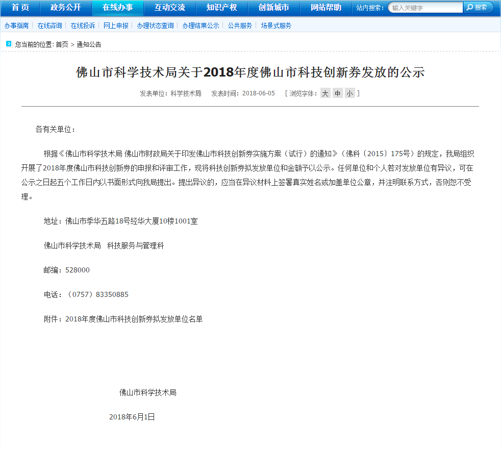 近日,佛山市科學(xué)技術(shù)局網(wǎng)對(duì)外公布了“2018年度佛山市科技創(chuàng)新券擬發(fā)放單位名單”,我司作為中小微企業(yè)的一員,榮登榜單之中,可喜可賀。科技創(chuàng)新劵的發(fā)放是對(duì)我公司快速發(fā)展、自主研發(fā)的肯定,激勵(lì)我們繼續(xù)推動(dòng)公司的技術(shù)研發(fā)建設(shè)和堅(jiān)持以“勇于創(chuàng)新、科技興企”的發(fā)展戰(zhàn)略方針。以下為《佛山市科學(xué)技術(shù)局關(guān)于2018年度佛山市科技創(chuàng)新券發(fā)放的公示》通知文件。