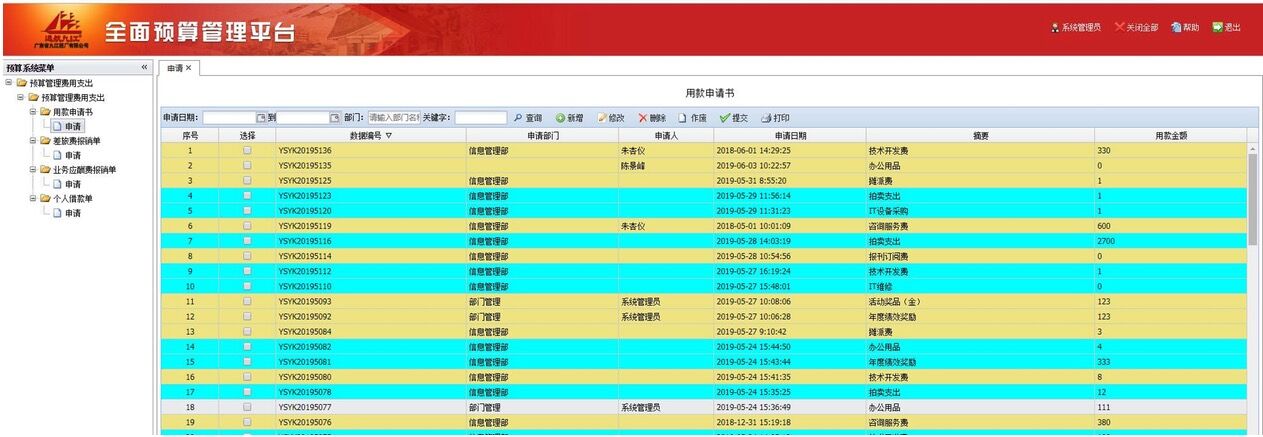 九江酒廠有限公司由于業(yè)務(wù)發(fā)展需要, 我司應(yīng)九江酒廠需求對(duì)全面演示平臺(tái)(下稱子系統(tǒng))項(xiàng)目進(jìn)行開(kāi)發(fā)。子系統(tǒng)包括用款申請(qǐng)書、差旅費(fèi)報(bào)銷單、業(yè)務(wù)應(yīng)酬報(bào)銷單和個(gè)人借款單四大模塊,四大模塊在原來(lái)的基礎(chǔ)上進(jìn)行改造,對(duì)費(fèi)用出口進(jìn)行改造,通過(guò)定時(shí)器定時(shí)把正式系統(tǒng)的數(shù)據(jù)同步到子系統(tǒng)中,用戶也可以在子系統(tǒng)中新增數(shù)據(jù)并可以作提交、刪除、作廢和打印等操作。
